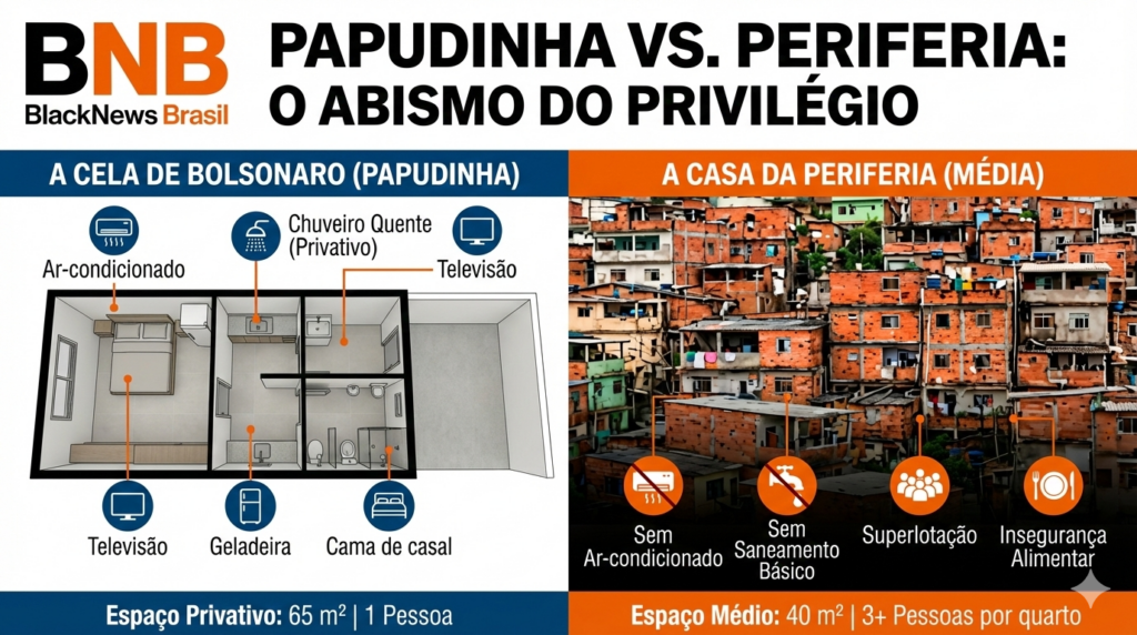 Para o BlackNews Brasil, a “cela” de Bolsonaro funciona como um enclave de bem-estar protegido pelo Estado. O privilégio na Papudinha é o espelho de um país que ainda escolhe quem merece ter um “Norte” seguro e confortável, mantendo a maioria herdeira da diáspora africana em condições que o próprio Estado classifica como inadequadas para a vida digna.